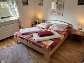Das erste Schlafzimmer befindet sich im neuen Anbau des Hauses, der von uns im Jahre 2013 fertig gestellt wurde. Neben einem Kleiderschrank, einer kleinen Couch und einem großen Doppelbett ist es