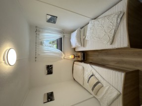 Das zweite Schlafzimmer ist mit zwei Einzelbetten ausgestattet. Kissen und Bettdecken gehören zur Ausstattung des Hauses. Lediglich die Bettwäsche wird nicht gestellt.