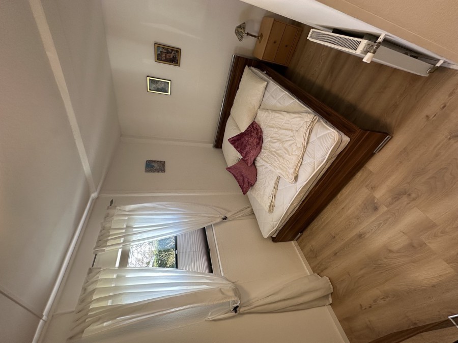 Unser drittes Schlafzimmer ist mit einem Futtonbett ausgesattet und einem weiteren Kleiderschrank.